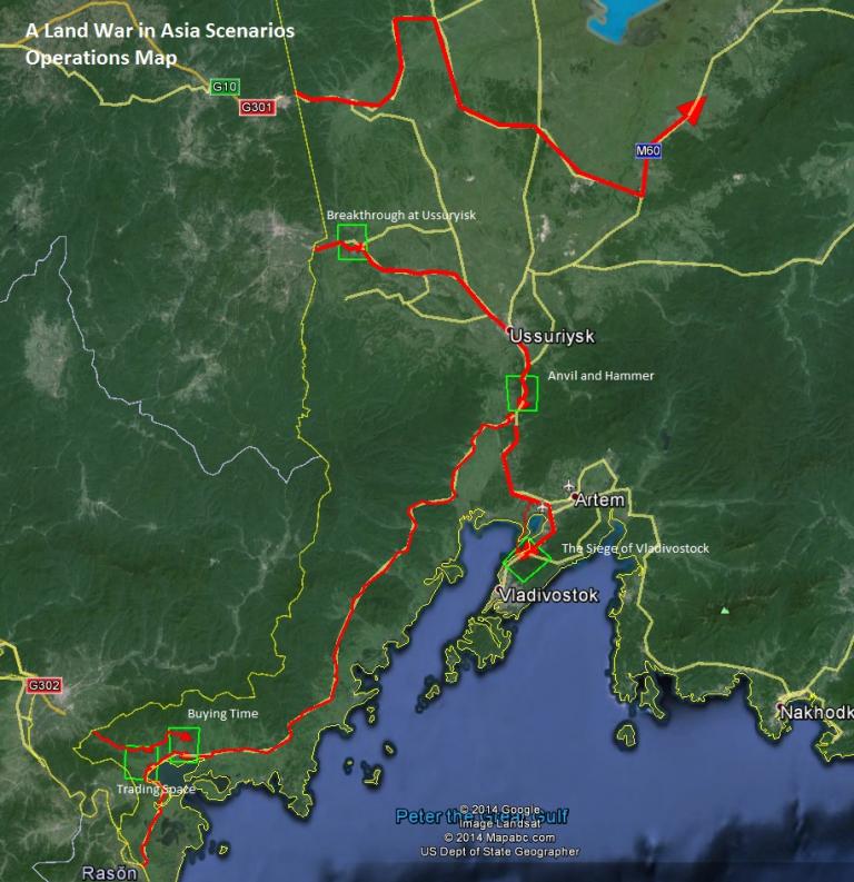 The battered Russian Far Eastern forces have largely withdrawn into the Muravyov-Amursky Peninsula, trying desperately to maintain a defense of the vital port of Vladivostock, Russian's primary Pacific port and naval base. Both the Russian and Chinese forces have been depleted in the fighting around Ussuryisk and during the long Russian withdrawal south to the port. Now, within what the international media has dubbed the "Vladivostock Perimeter," the remaining Russian formations need time to reorganize, refit, and secure the strong defensive line across the neck of the peninsula. The Chinese are doing their best to deny them this respite, but they are facing problems of their own. Winter weather has come with a vengeance to the Far East, snarling logistics for their armies advancing through the rough mountainous and marshy terrain. More ominously, the Americans, eager to avenge their embarrassment in Taiwan, have offered their assistance to Russia in the conflict. Two carrier battle groups along with the Russian Pacific fleet have ensured air supremacy in the skies over Vladivostock and US Navy aircraft are interdicting supplies and reinforcements headed to the front. A USMC MEU is en route to bolster the defenses of the city and units of the Russian Baltic, Black Sea and Northern fleets are transiting the Panama Canal with reinforcements from European Russia. Will they arrive in time?