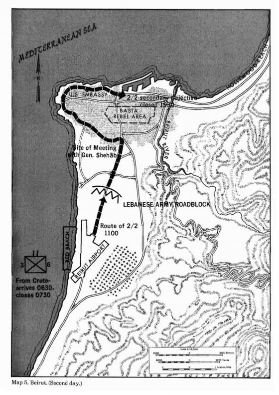Attached: Is a nice map illustrating the 2d Battalion, 2d Marines July 16th advance up the west side of the city, through the "Basta Rebel Area", and into the Port of Beirut.