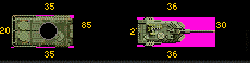 That is just four 4 pixel squares at the outer boundary with XXX in between for the hull and the same for the turret except that uses 2 XX