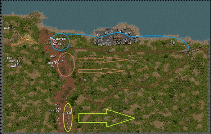 The objectives far to the east will be tken by sneaking along the beach if possible bythe slovaks and the armored car platoon.