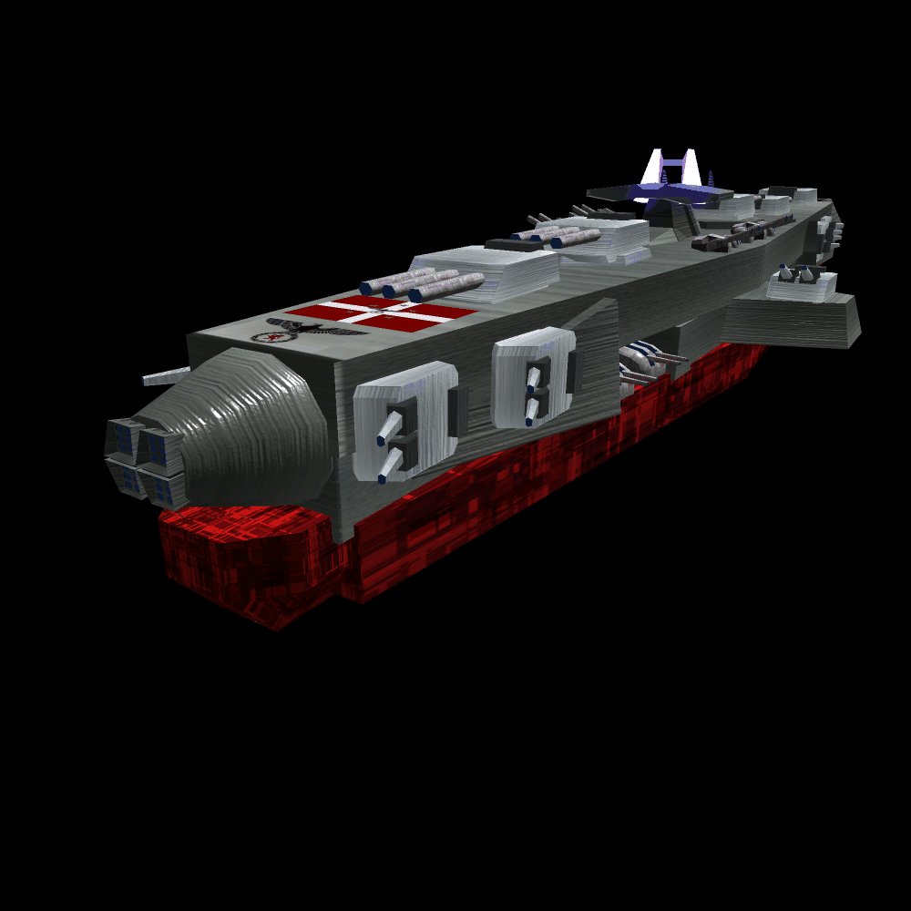 And I didn't mean getting rid of the glowing blue protrusions. Perhaps what you could do with the Bismarck superstructure, find a 3d image of the Bismarck (such as in Empire Earth, though I think that it will be tiny when compared to your image) and take the superstructure from there. On the other hand, EE isn't such a good idea, as you have no details... Try to find another Bismarck pic then. Use the exact superstructure, modify it to adjust it to the color/texture of the rest of the ship, and then place the GFG in place of the chimney.
