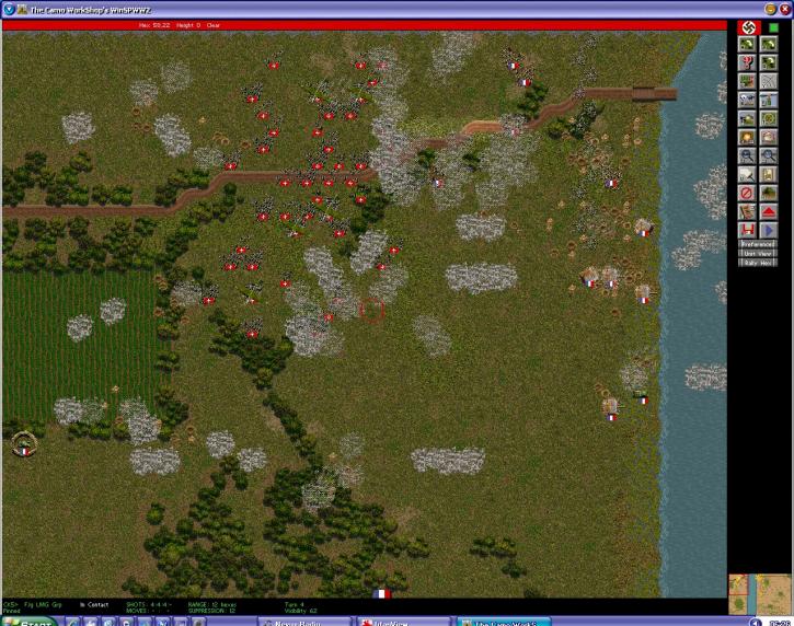 Vision will at least help my FOOs have 2 & a vehicleFOO. Risky bet but if moves to tree line slowly should be safe at over a Km, oh river is 14 hexes wide, thats a bit of time in a rubber boat
