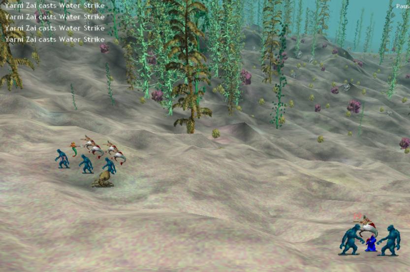 Now the bad news. Our forces suffered defeat in the shifting tides of the Sea of Mermaids. It was my own fault, as I hurried the turn and stupidly placed my ichtycentaurs at the far right with Attack Closest orders. This had them charge just shy of the ichtyid front, allowing the smurfs to draw first blood. Since they wield nets, my centaurs were sitting ducks, and quickly cut down before they could land their high damage charge bonus. 7/13 killed, and yet another failed attempt at a 2nd expansion party.