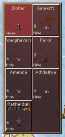 Accordingly, Balastha is storming the castle in the province he just took; Devarama and Dhritiman are pushing south, and Bishen is moving westwards. After this turn Vanheim should only have 3 provinces left, and only one castle.