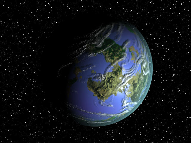 Okay, I've done things diffirent now. I've seperated the clouds from the land (Jippie, cloud shadows!) and I've added a transparent atmosphere.