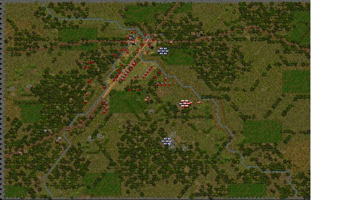Plan of battle: Develop a fluid battle in the southern areas, denying enemy usage of clearings and hilltops while using maneuver and concentration of force to defeat the enemy in detail. Artillery assets will be used to surpress enemy units in more heavily wooded areas.