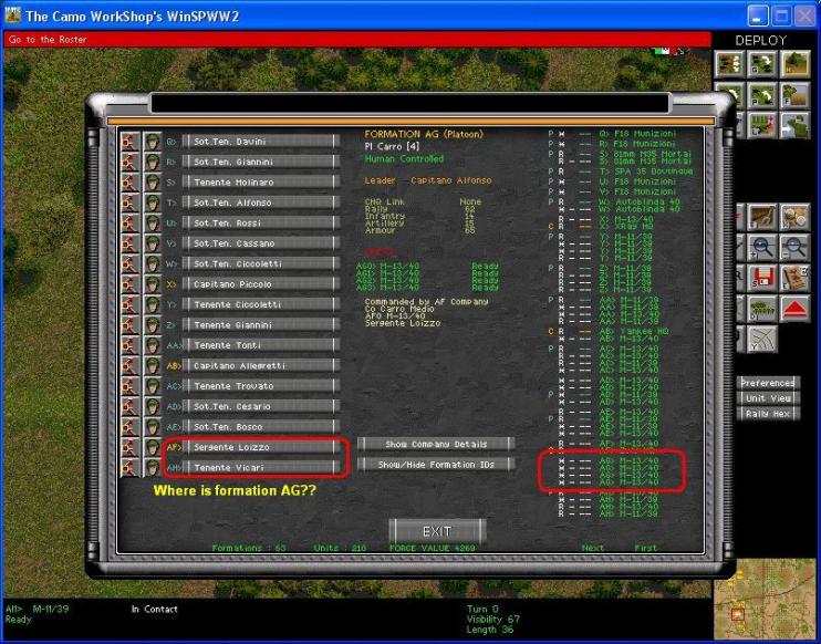 During the deployment of my 3rd Long Campaign battle, I noticed one of my formations (AG) did not have a unit defined as the leader (PL). When I checked the Roster (Hot-key H) for this formation, it says the leader is Capitano Alfonso, but this person does not exist. I checked the Roster for all formation leader and checked each unit in the company. He does not exist. The formation is missing from the left column in the Roster which lists formation leaders. This problem seemed to have existed in the previous battle as well. I just noticed the issue.