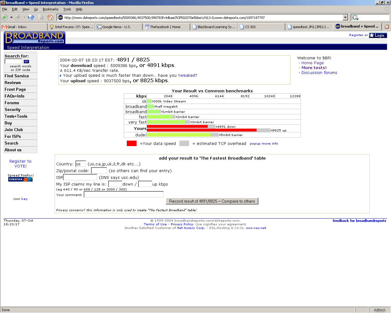 I wanted to test my DSL speeds so I went to DSL Reports and this was the report I got.