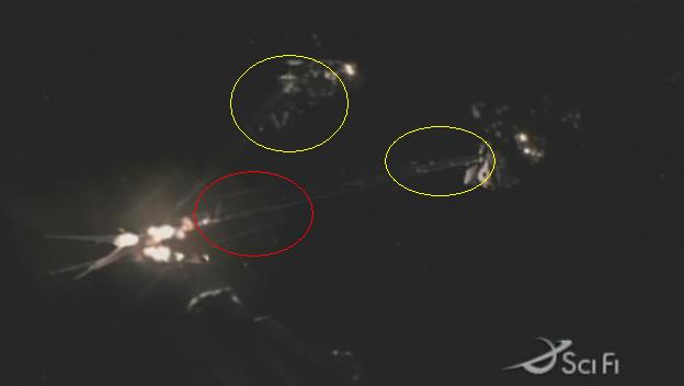 The attached screen shows a better view of the battle. Yellow are Battlestar missiles and red are Basestar missiles.