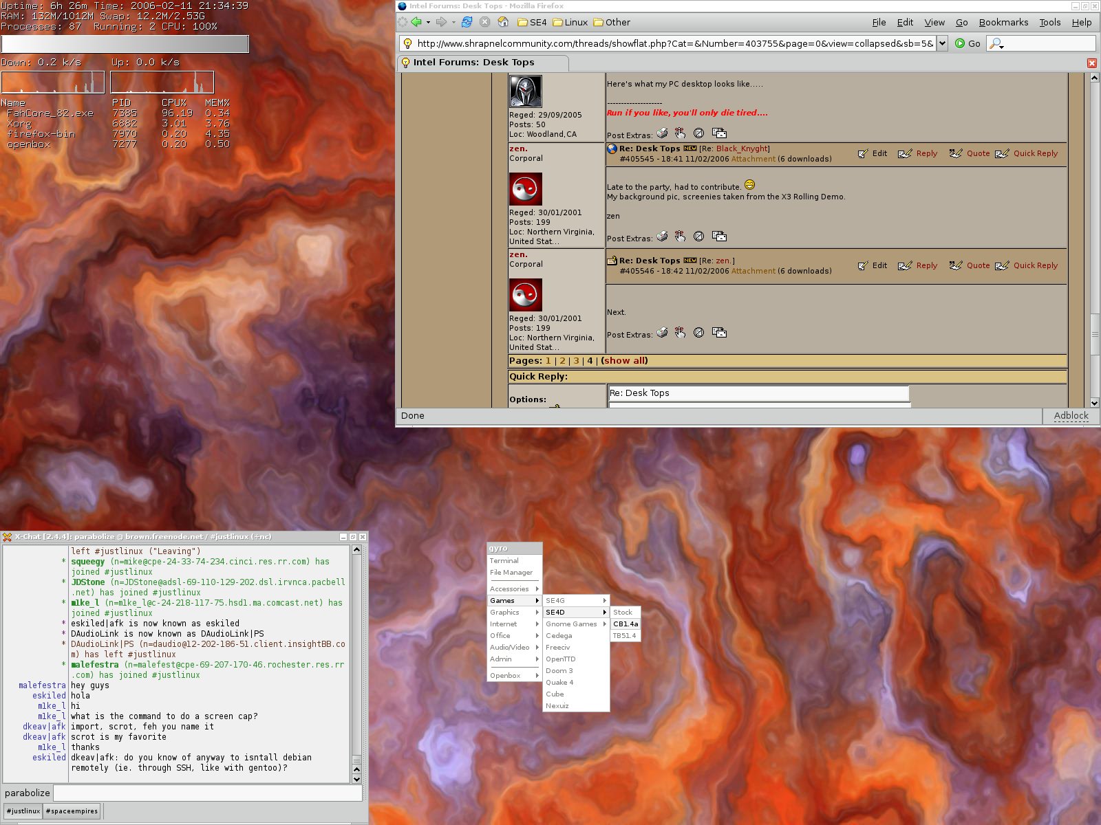 I attached a openbox shot and here is a link to a gnome shot: