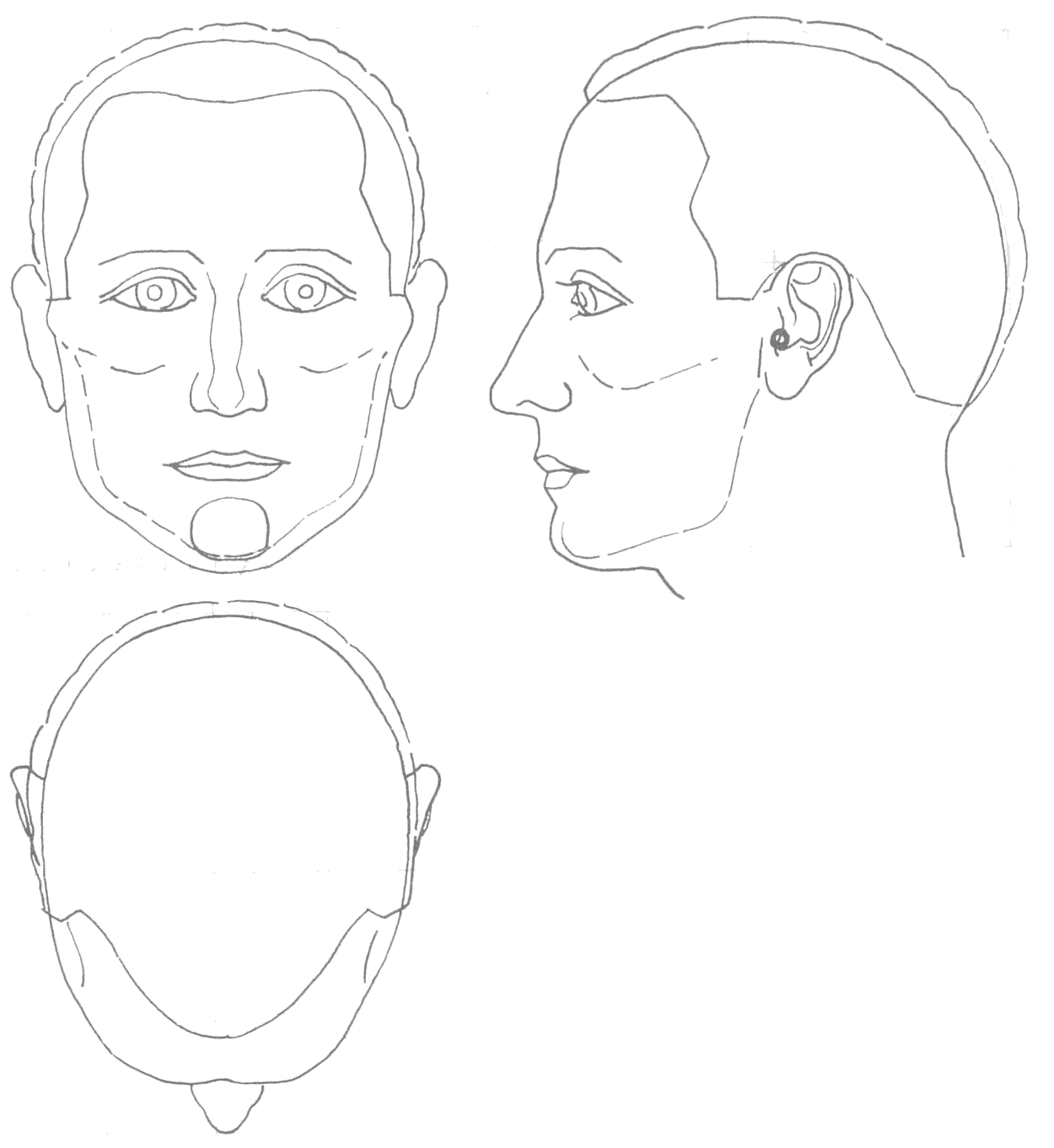 No I actually mean 3 axes, see attached picture(import it into you're 3D program as a world background or apply it to a plane then draw over it to form your mesh), you start with a side profile, outline from the chin, lips, nose and forehead, then in the front view outline the jawline, eyes, and cheeks(you only model half the object, then mirror it), being careful of the amount of vertecies you add. You want them to all line up so when you hit fill you have quads and quads only(this is where i messed my first face attempt). Then you switch to the top view(or split the screen in 4 so you can see it from each angle with a 3D rotatable view) and grab and move each row of vertecies into place, making minor sculpting adjustments as you go. Using just the side profile and the head on profile I made a head in about 1-2 hours on my first go(as I said it sucked, a few n-gons cause I wasn't paying attention so I scrapped it, next time I'm lining the verts up better)