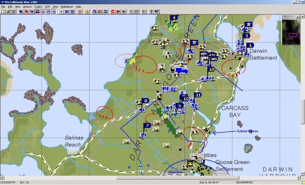 There are no harries in the Goose Green scenario. Yes, they are mentioned in the orders, this is because the orders are a direct transcript of the orders given by Lt/Col H Jones at Goose Green.
