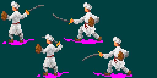 I'm going to see Bandar Log and EA Kailasa for the curved swords, and perhaps C'tis as well. It's not the sword (when I can compare to Dominions sprites) but where the hands are located that's giving me trouble. I think I'll go watch some youtube videos about Kalaripayattu and see if I can find something interesting. I think I'll give the commanders slightly different poses and fancier attack.