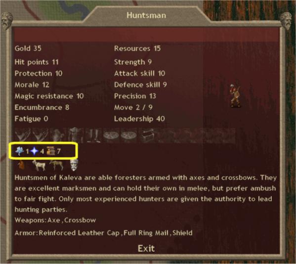 General evaluation for the units I tried : IMHO, Moose Brothers are far too powerful for their prices. They make Kaleva a rush nation and a real super-heavy powerhouse for early game at least. Huntsmen (stealth +35 ! for 35$ + 15res) make scouts of no use as recruitable troops in the capitol. Mages are very cheap also considering that Wisemen & spellsingers are powerful mages & excellent researchers. I've not tried Hakkapelite yet but considering the power of Moose Brothers, I'm not going to buy these guys for a while. Just MB in masses.