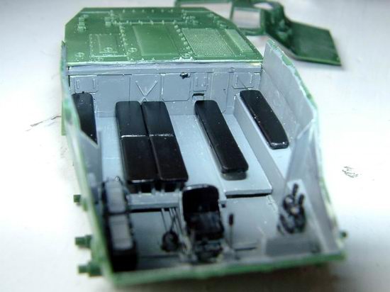 @ Andy - even without my written sources, I'm entering the joust here. First, I haven't seen a single web source (and yes, I read Russian, albeit slowly!) that suggests that the PK version accommodated anything less than 20 pax. Secondly, I've attached a photo of the hatches on a PK - if one thinks about this logically, what can adding armour do to reduce troop capacity? Answer - not a lot. I've also attached (and I know this is iffy, but I Googled it in cyrillic characters, so presumably it's authentic) a photo of a modelled interior of a PK. Now, if the bank of 4 seats on the left take 2 bums each, far right takes 3 and near right takes 4, you end up with 15 - which agrees with nobody! However, if the bank of 4 takes 3 bums each, plus 4 plus 5, you're pretty close to 20 (plus 1 guy saying 'spasibo Tovarishch' for the extra room).