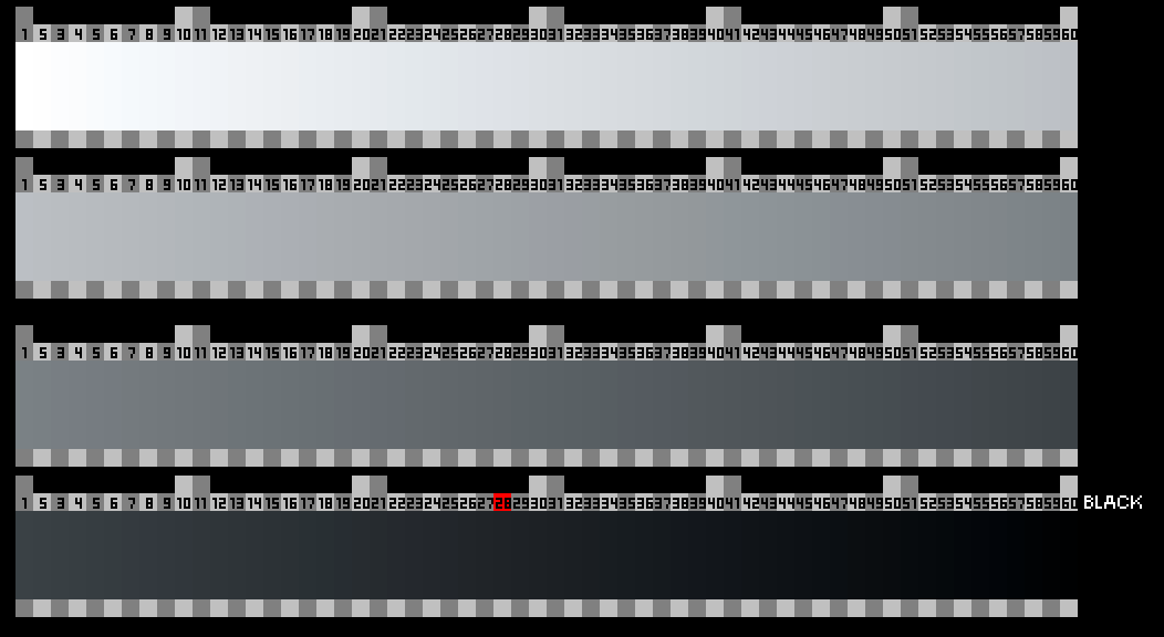 On the last segment (the darkest one) number 28 would be the color seen in the flag. The gradient starts at luminosity 240 and ends at luminosity 1.