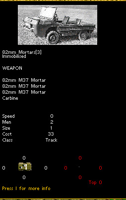 So far pretty good. I lost count - this is either 4th or 5th battle in, and I noticed this unit roaming the field. It looks like a weps carrier, but the description reads 83mm mortar (3). I've included the info file. Does this make sense or another sprite problem?