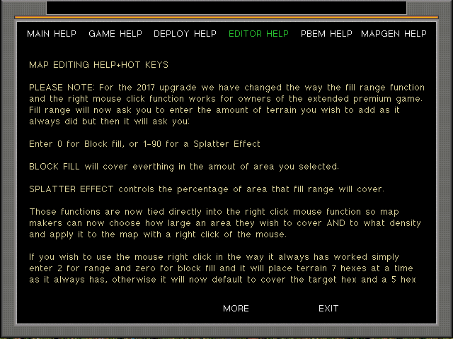 And the (full game) GOTO feature makes it far easier to get to save slots and scenarios that are way down the list than the old click-click-click process. Press GOTO and then enter say 600 and you are at save slot 600 instantly, with item #600 already selected and ready to press ENTER to load/save it, or at least read the description if it's a scenario with no need to press the scenario button to read the scenario text as before. (Press ESCAPE to deselect it if it was not the one you wanted of course).