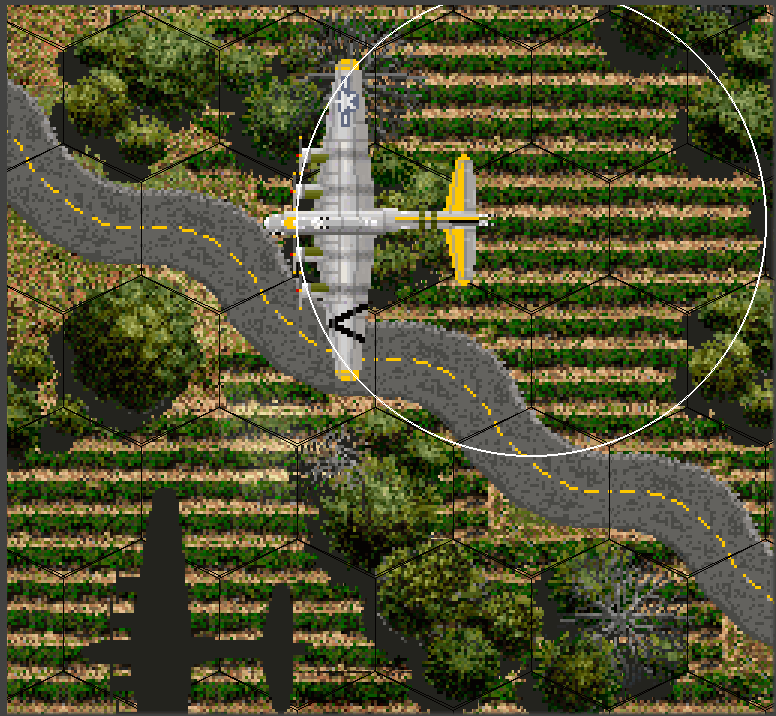 Since that rendering routine also allows sprite rotation, my next hacking at the game will be for vertically laid out terrain hexes, so you can have the normal "wargames table" game view where you are on the bottom of the map looking across from behind your troops at the enemy player opposite. That may work or turn out to be a can of worms...