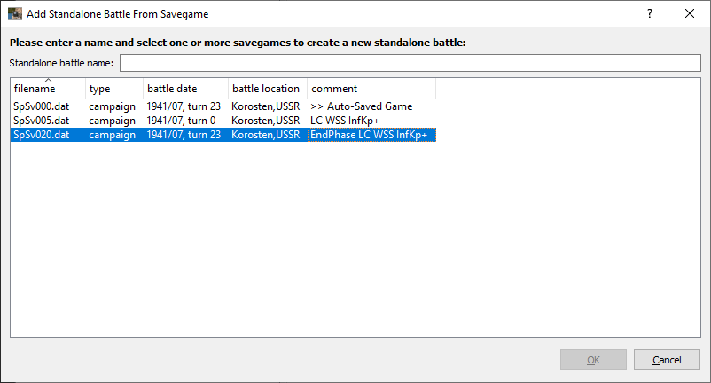 When I use the "Add standalone" button it presents me a list but as the savegames are from a campaign they cannot be selected.