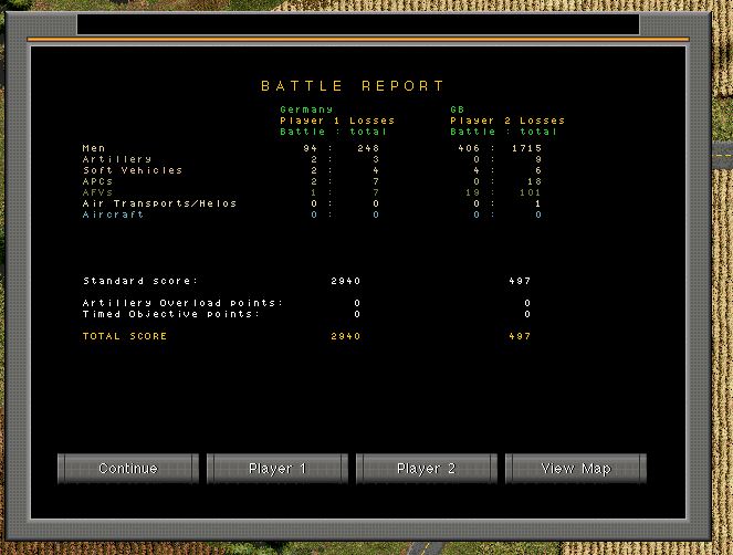 3) Reloads - campaign indeed is hard, buit its main enemy are Allied lucky shots that sometimes occur. I had to reload - as for my standard - A LOOOOT, sometimes few times per battle. Eg. on one occasion Thunderbolt hit my discovered infantry, but lots the sight so it randomly fired into the woods 500 metres further one shooting my Panther :P I am not sure how others play it, but I myself have a strong rule that only 1 reload per game is allowed (to counter some impossibly unlucky situations), 2 if game is 40+ turns OR if I want to achieve one particular situation (I can reload as long as I want in that case, but once per game).