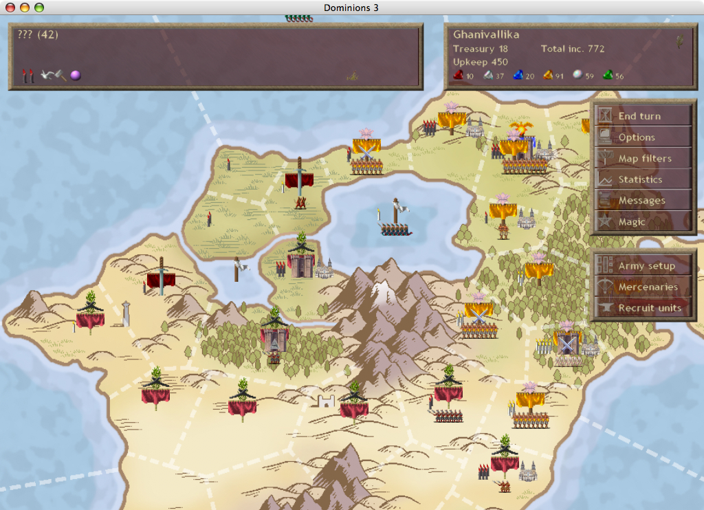 Short term plans are to take all remaining independant provinces. Medium term plans are to equip a force capable of taking out T'ien Ch'i or Vanheim, and still defend the homelands. I will need to outfit my commanders, research some damaging battlefield spells, and recruit a bunch more troops to do this. Long term: take over the world.
