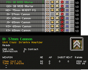1/ however is a mystery. The sound number assigned now is an HMG sound and that unit has been a twin 13mm MG for as far back as I can check but you are correct, it produces a high-velocity cannon sound but that I can correct by "changing" them to the same unit using Scenhack ( which I have now done ) and they now play the correct sound FX but in the process of that fix I discovered we had two Japanese twin 13mm AAMG's..... the problem is that one of them is only a single and the photo for it is a single so I removed "twin" from the unit name.