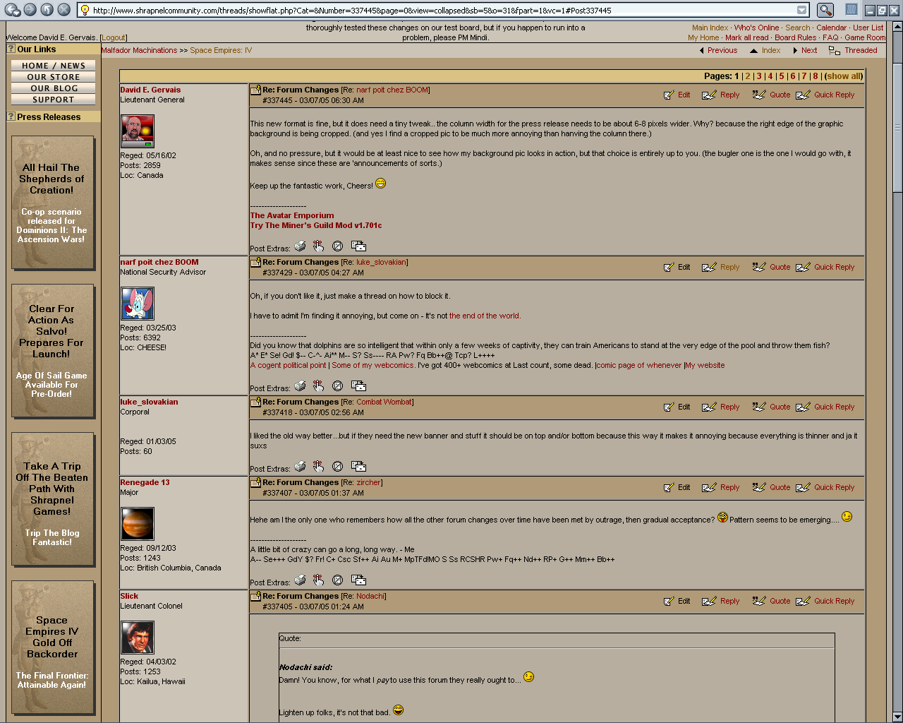--- Join us in the #SpaceEmpires IRC channel on the Freenode IRC network.