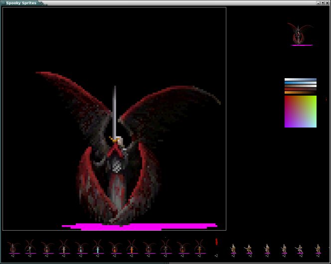 Here is a screen from spooky sprites. This is Azazel, teacher of weaponcraft, war and cosmetics.