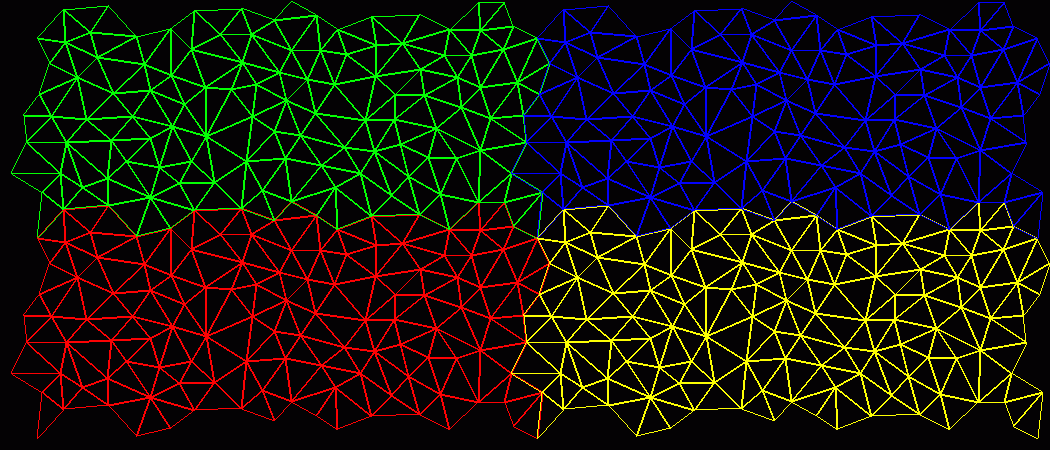 one of the major hurdles for the next release has been leaped: generating a wrapping mesh, which i've attached a sample of. the image is a mesh tiled with itself in four colors so that the mesh boundaries are visible.