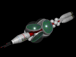 Here's the colony ship. The domes aren't done and I think I'll add some fuel tanks and stuff.