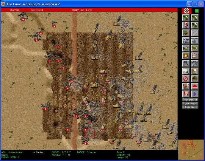 Most of the enemy tanks were destroyed. There were roughly 25 left, but many of those were damaged in one respect or another. Because so much happened so fast, it was impossible for me to keep track of damaging hits to enemy tanks. I know some tanks were damaged and then destroyed, while others were damaged but survived the turn.