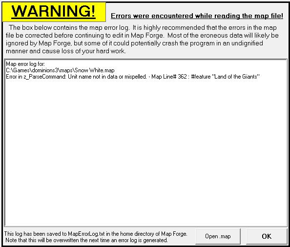 Map file not saved! Map: E:\Program Files(x86)\dominions3\maps\Snow White.ore Error: Subscript out of range