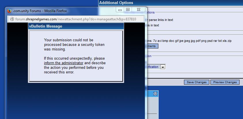 I don't know what this " security token " would be. 14 mb is well under the limit......try .rar or 7z if that does not work I will refer the matter to Shrapnel....or you can contact customer service yourself if you prefer