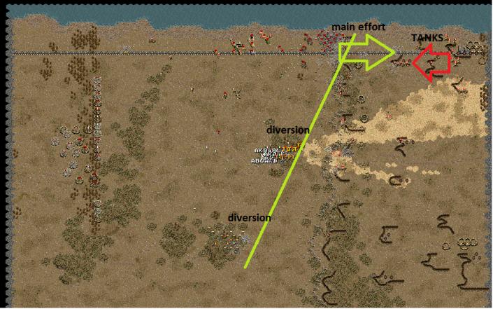 After the secret documents are all destroyed the commander decides to go move into the trenches with his staff since his transport has been destroyed by artillery and he has little chance outrunning tanks so he might as well stand and fight.
