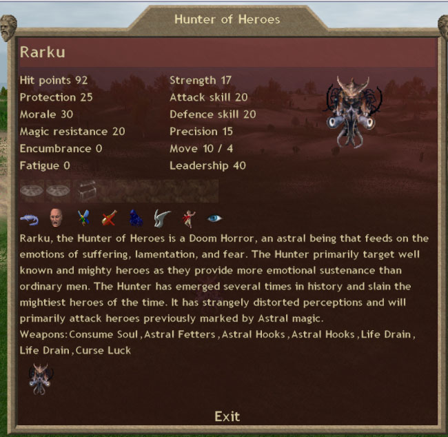 Of course, if you had something like Ether Warriors as bodyguards, they could be VERY nasty indeed. Attack just 13 and Moon Blades have just 2 att IIRC, so only 14% of the attacks bypass Rarku's defence, but with 16 str and increased damage against magical creatures they might deal 10 or so points of damage to him on a successful hit, if they succeeded the Blood Vengeance resistance throw and didn't hurt themselves.