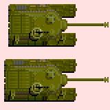 I got my dimensions from Firepower. It gives great information. What you are referring to is exactly what was so challenging about this icon.. Trying to get it to look right within it's own dimensions was a pain. The last thing I could have tried to stretch the superstructure 1 more pixel was the front fender track connectors. I could have not gave it a pixel forward and stretched the entire vehicle that one pixel.