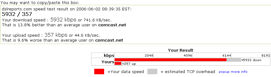 dslreports.com speed test result on 2006-06-01 22:22:12 EST: