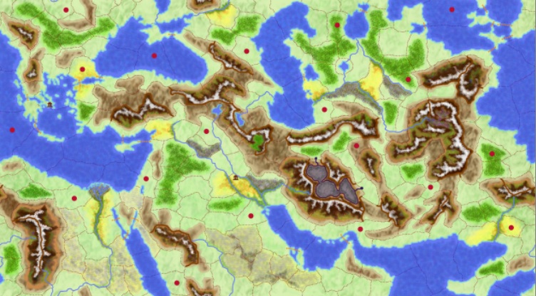 I have updated the map to add some additional no-start provinces. I have also updated it to have several preset starting positions (16 land, 3 water). They will be randomly assigned if used. They are optional on the game setup screen. I think this will make it easier to have more balanced starting positions in games. Each starting position is 3 provinces away from at least one neighbor (4 moves), assuming the game is full and all positions are used. No starting position is less than 3 provinces away from another.