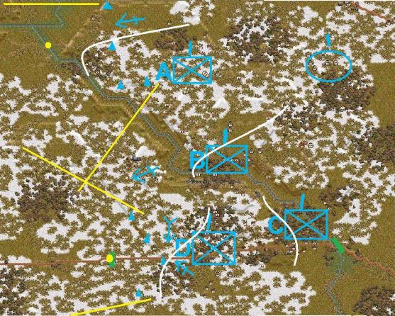A and B Coys will defend in TR sector, supported by the 1x Armoured Coy. Both Coys will take a 2 up formation, and harbour in and around forested VLs.