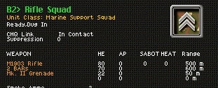 The #2 unit in formations B-O, which includes Rifle Squads, Paras, and raiders, is missing the weapon in the 4th slot. I would assume this was intended but the unit is shown as having shots for the 4th weapon slot.