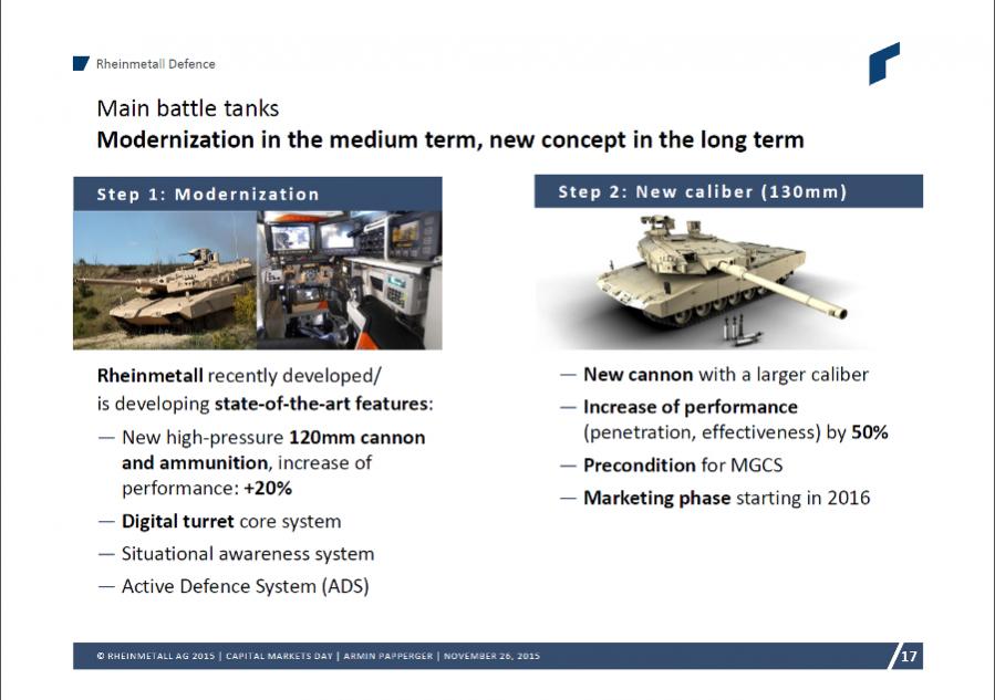 The new 130 mm gun is a precondition for the future tank, known as ‘Main Ground Combat System’ (MGCS) being developed by Germany. MGCS is currently being developed by Germany and France as a future replacement for the Leopard 2 and Leclerc main battle tanks, considering the increasing threat posed by Russian systems such as the Armata (T-14) MBTs.
