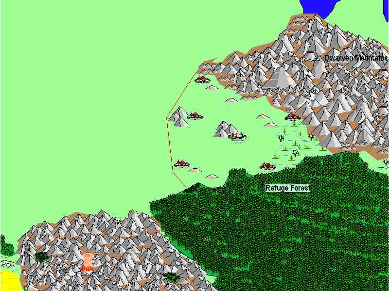 I've been working on my map (I already had the continent shape from the demo). Only problem so far is I don't think I can export part of the main map to work on regional maps. Anyway here's an example from the southeast of the map. You can see the elf forest, a duchy I have plans for and the mountains where the Dwarves live, and right down in the corner is part of the desert the Thri'Keen come from (by the way I already had all this planned). Don't worry about the quality, I reduce it to save space.