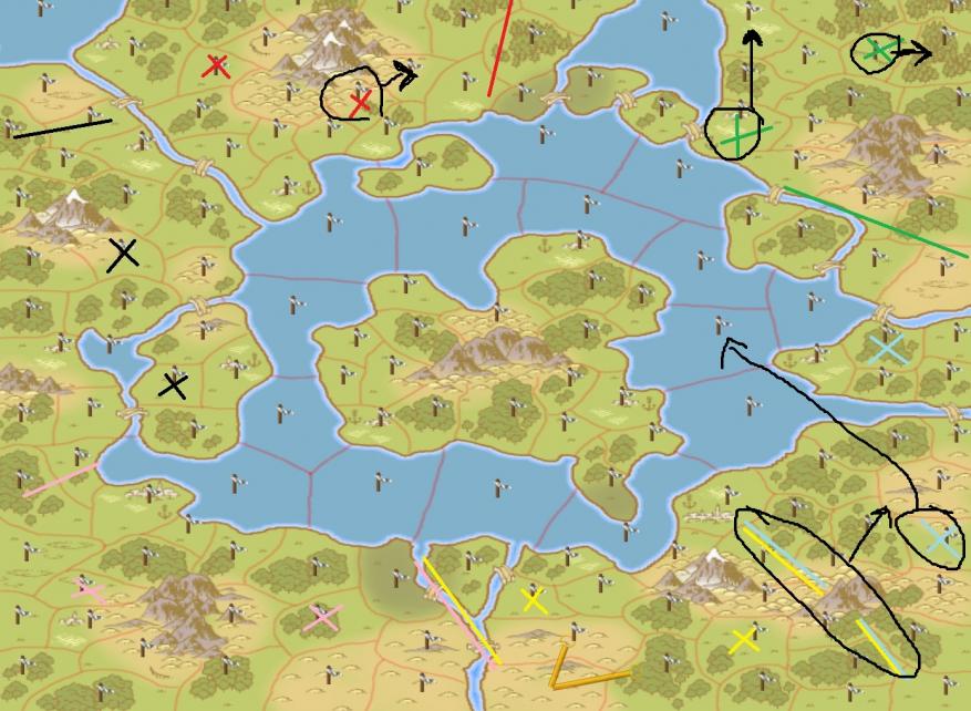 I do agree that teal have a hard position to help each other. So if people don't mind i ll take the water nation which solve the problem. It also solve the problem problem for yellow who had a little less territories than others "in theory".