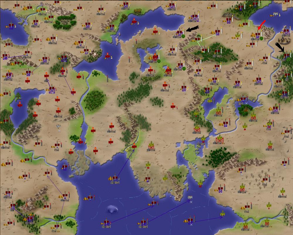 [EDIT] I attached a screenshot of the last turn. The red arrow points to my capital. The Black arrows point to the two provinces where my generator items are held... I am, of course, Vanheim.