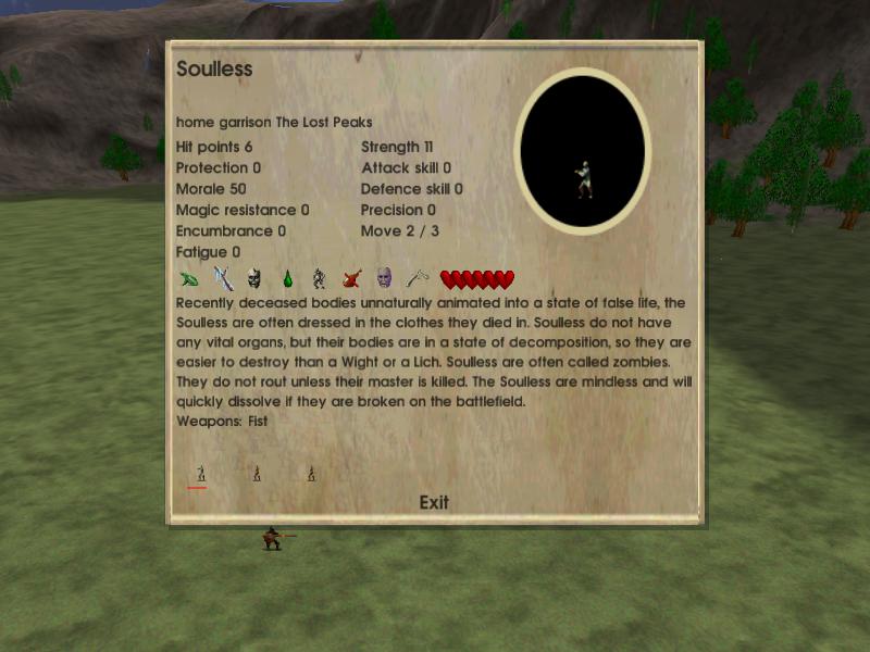 Two battle screenshots, first the stats of the hapless soulless that was guarding an enemy commander, and the next one listing its afflictions, some of which I'd never seen before...