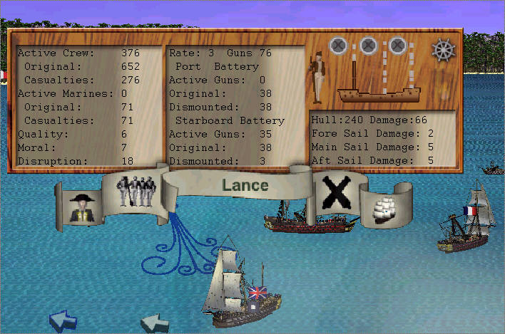 And the other ships enterfaces indicated the port side was out. After playing I saw that it was the port side that was working. Because one turn I moved to fire to starboard, it looked like it should from the crew interface, I had crew assigned to it. But after I moved it couldn't fire port. Bottom line if I just went by the crew alocation interface, I would have all my gun crews on the starboard side twidleing there thumbs, and my cannons unmaned.