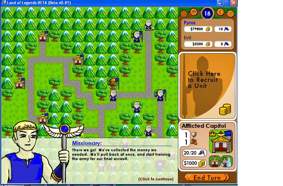 By the end of turn 15, I had $41600, 8 cities, 4 gold mines (w/ hags on each) and the AI was down to 3 units, 2 of them heavily wounded.