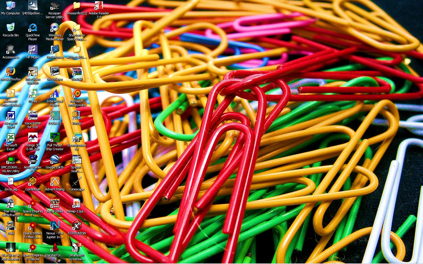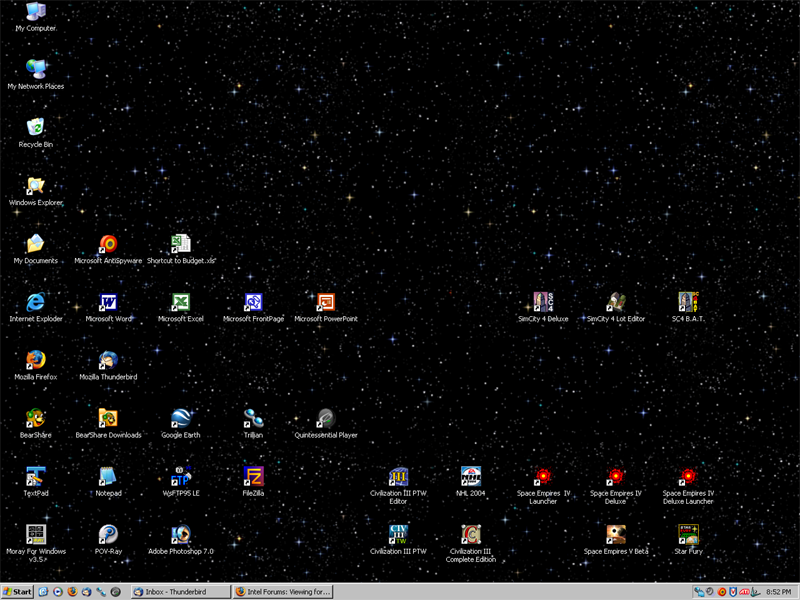 Here's my desktop. Nothing special, the star background is my own custom starfield for Space Empires.