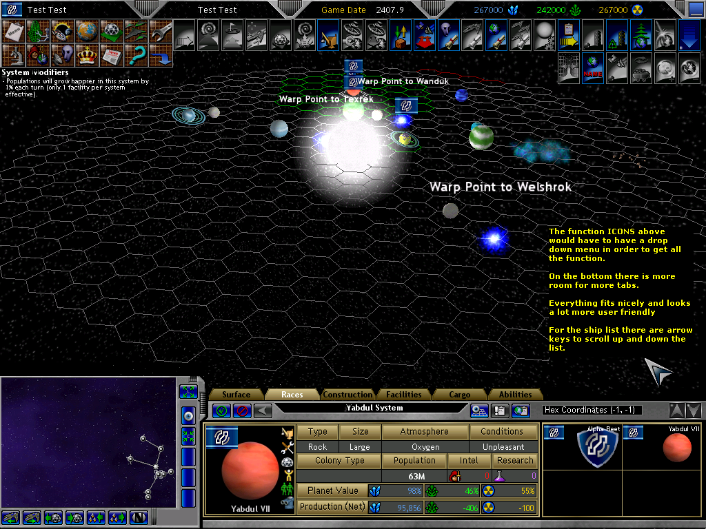 I think I'd prefer smaller fleet/ship/planet icon stuff in the hex-view, though. Alot of scrolling with only 4 of them showing at once. Other than that, such UI changes would be a great improvement.